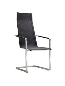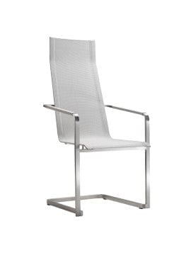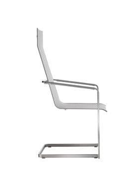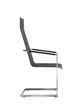 Jazz stoel met sledepoot en hoge rug is uitgevoerd met een RVS onderstel en is verkrijgbaar met softex coal of softex sand zitting en rug.