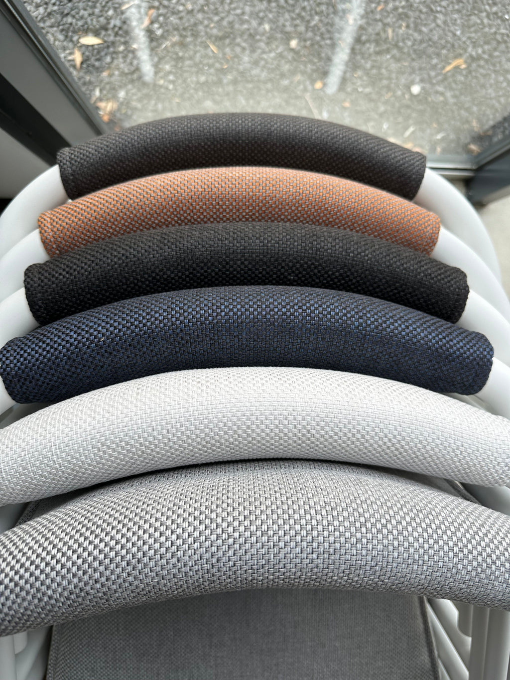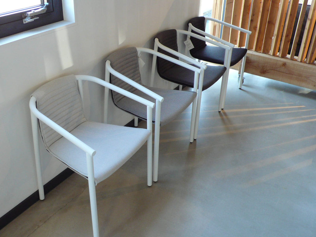 zitting in 6 kleuren blauw, oranje, wit, grijs, antraciet en zwart á € 699