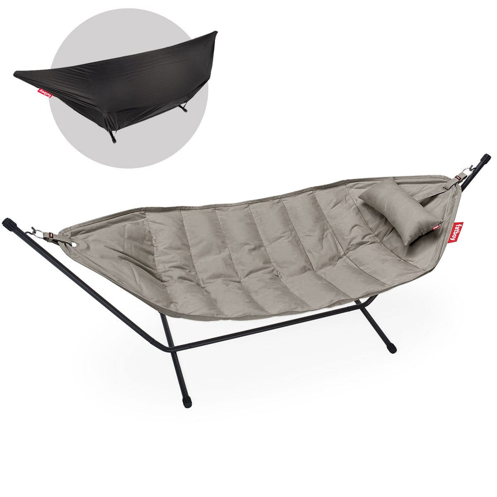 De comfortabele Headdemock Superb outdoor hangmat voor twee personen (tot maximaal 150 kilo) is voorzien van een aluminium frame standaard. Eenvoudig in elkaar te zetten en stelbaar in hoogte. Headdemock Superb is gemaakt van het sterke Olefin. Deze stoffen blijven en zijn UV- en vlekbestendig.