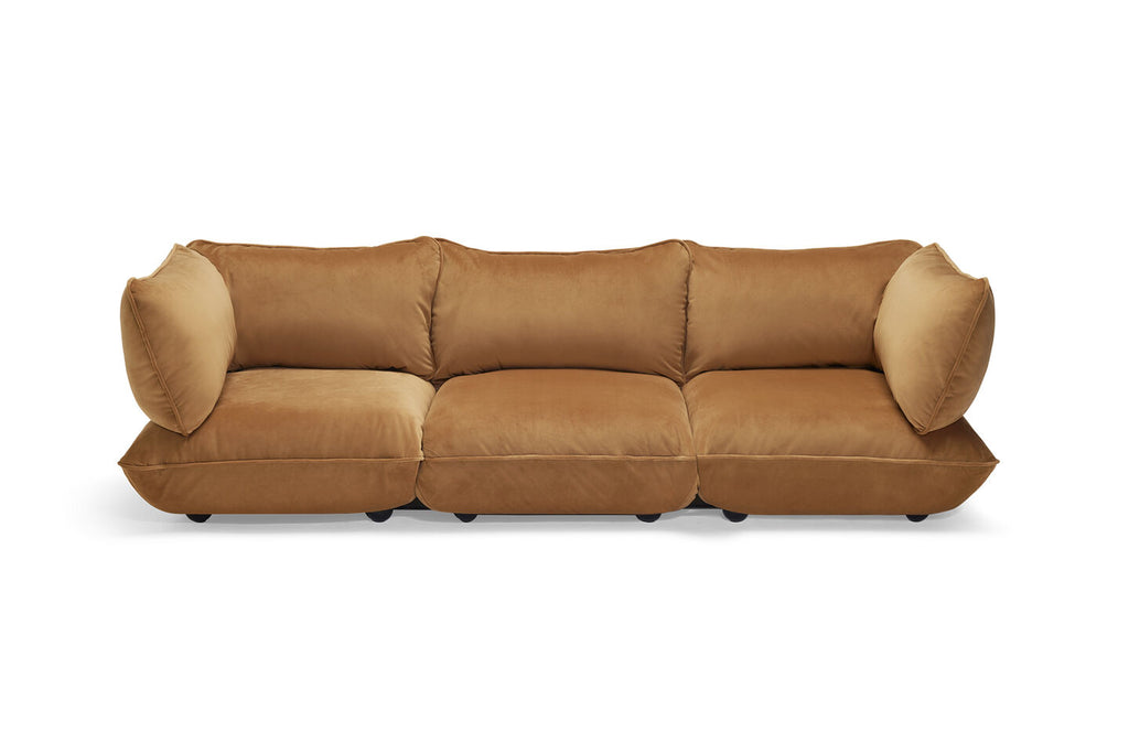 De modulaire, circulaire Indoor Sumo corner Sofa is stevig en sterk, stoer en stijlvol. En maximaal royaal, wat z'n ontwerp meteen iconisch maakt. Het metalen frame maakt ‘m extra robuust en de kussens van recycled schuim en stoffering blijven jaren en jaren stevig. Vlekken krijg je er zo af met een doekje, of je stopt de sterke hoezen in de was. Deze modulaire loungebank transformeert je woonkamer tot je favoriete hangout. Een hoekbank, loveseat of recordlange bank? Stel je ultieme Sumo Sofa-set samen en master the art of hanging out.