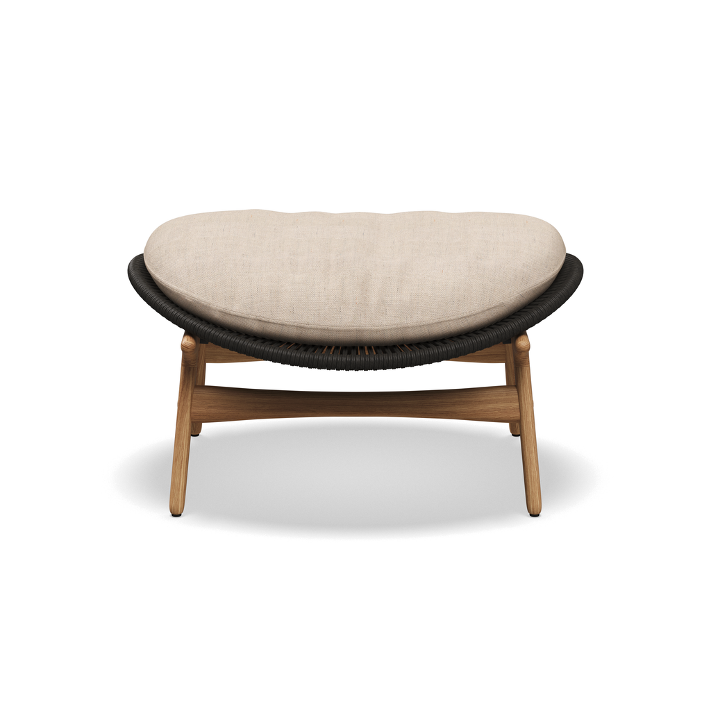 Om het geronde frame van a-klasse teak is een kunststof draad omwikkeld.