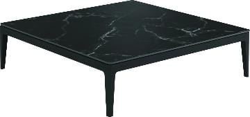Frame is van gepoedercoat aluminium in de kleur meteor of wit en het blad is verkrijgbaar in teak, nero ceramic.