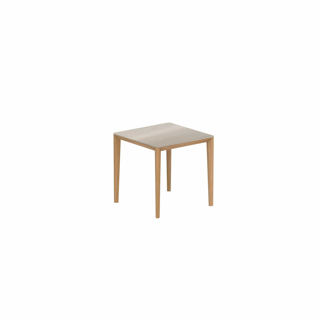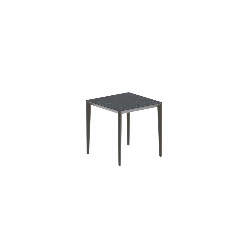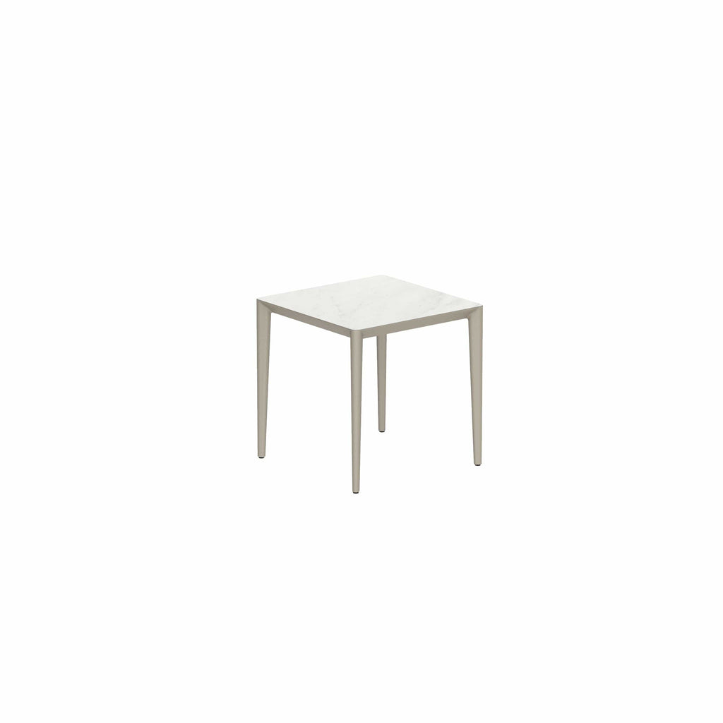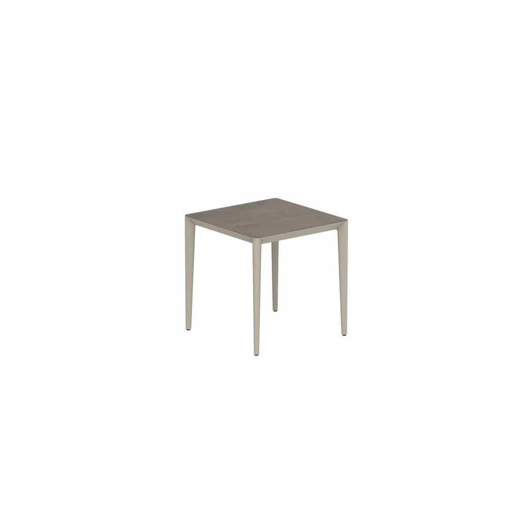 Royal Botania U-nite tafel in diverse kleuren gepoedercoat aluminium met keramisch of teak blad.