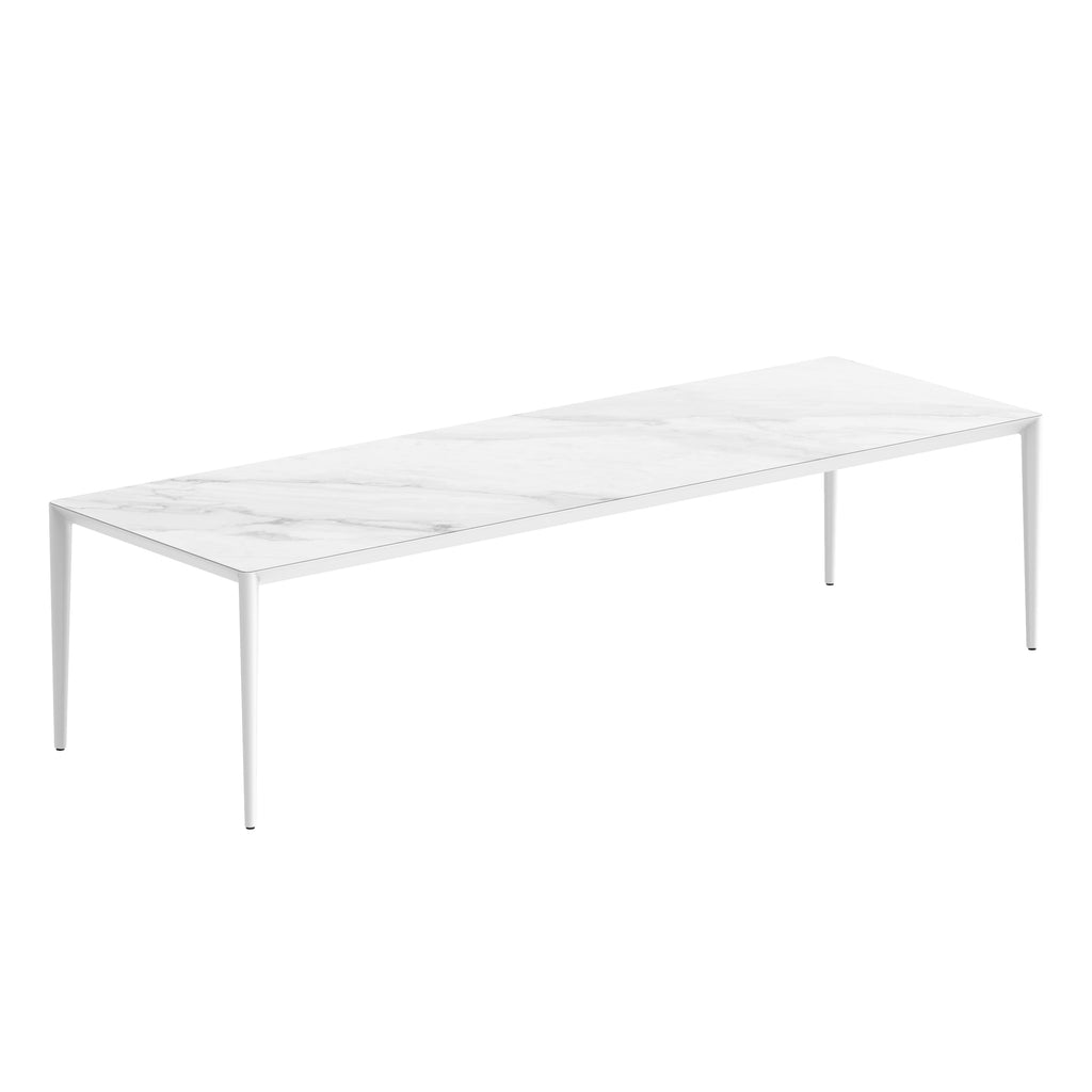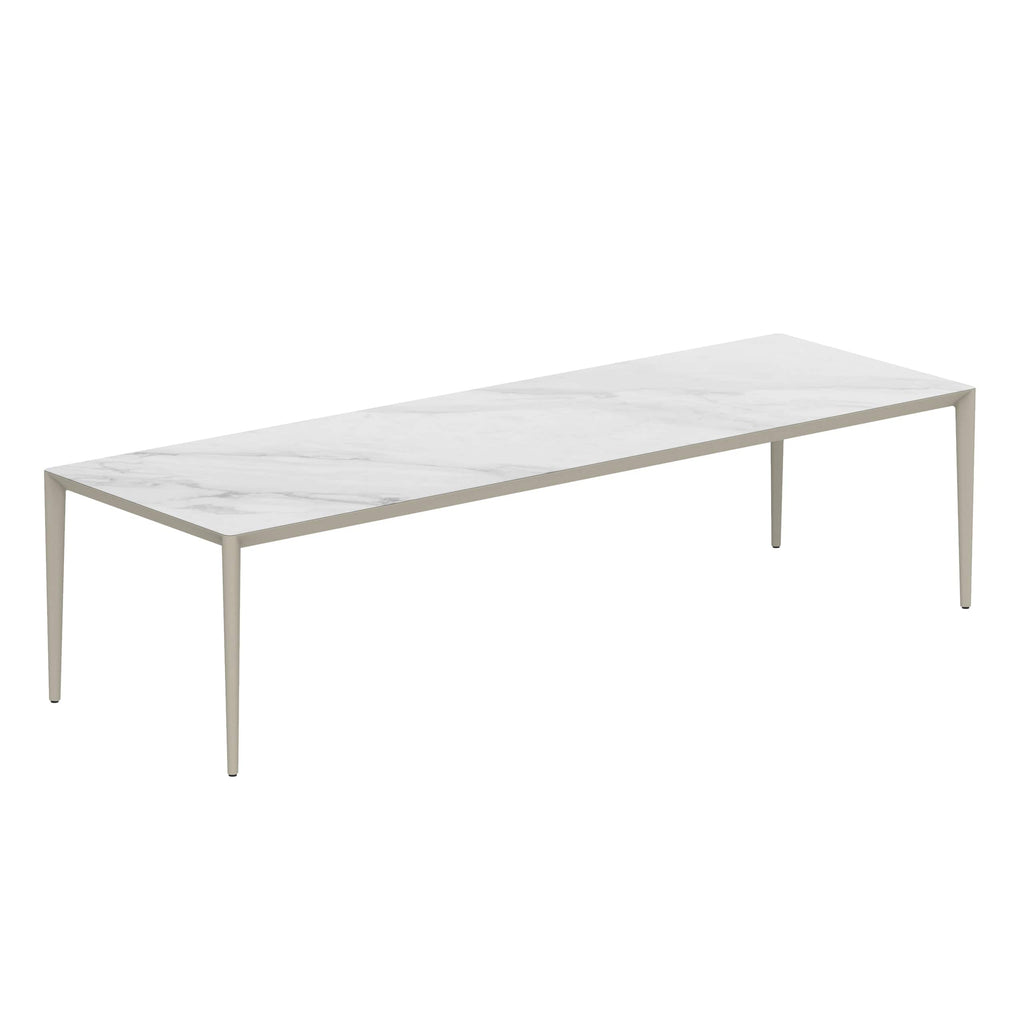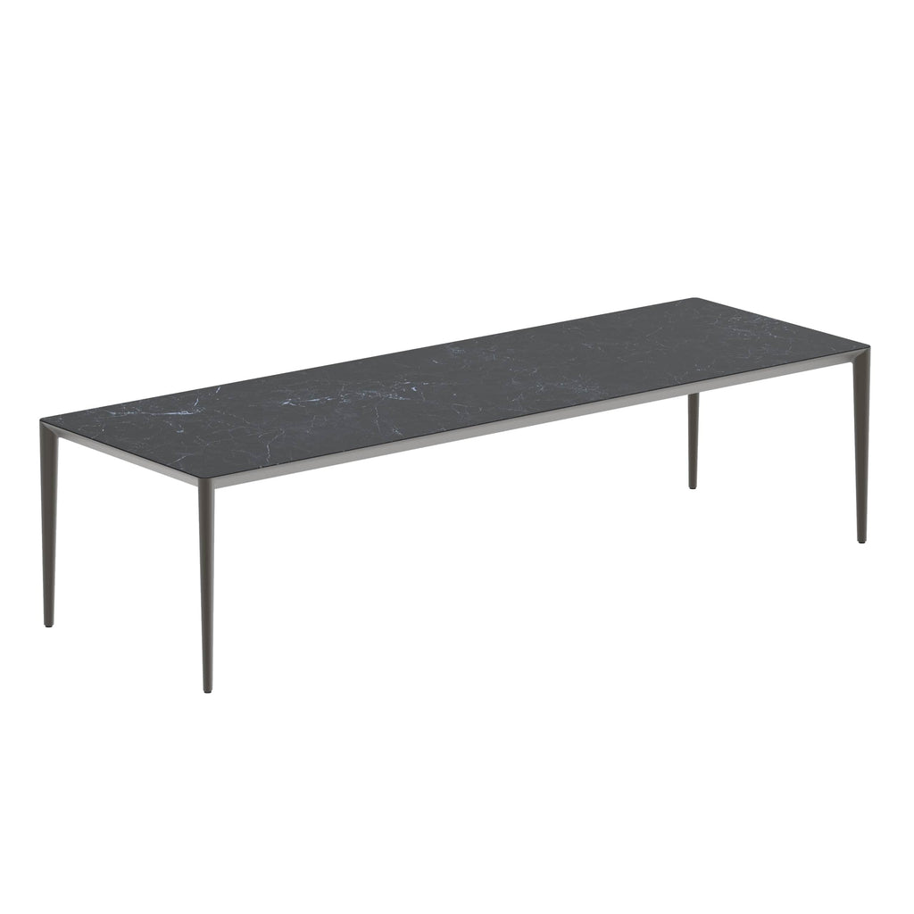 Royal Botania U-nite tafel in diverse kleuren gepoedercoat aluminium met keramisch of teak blad.