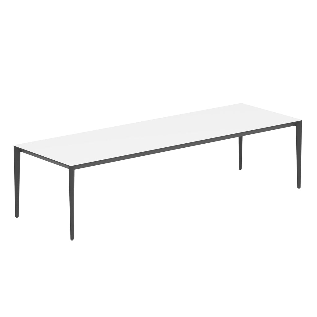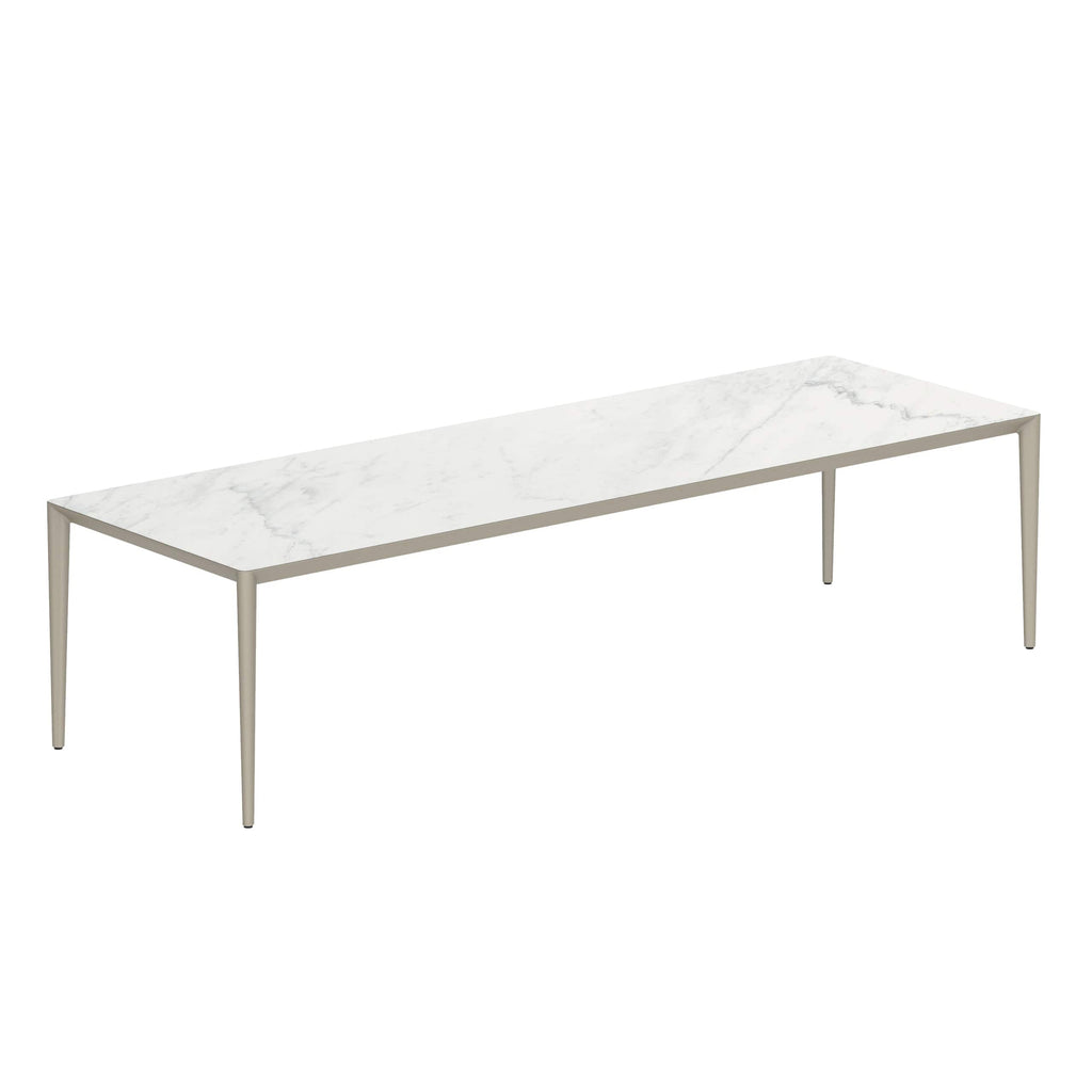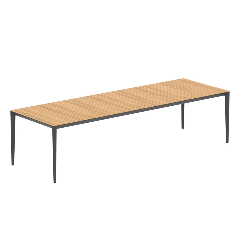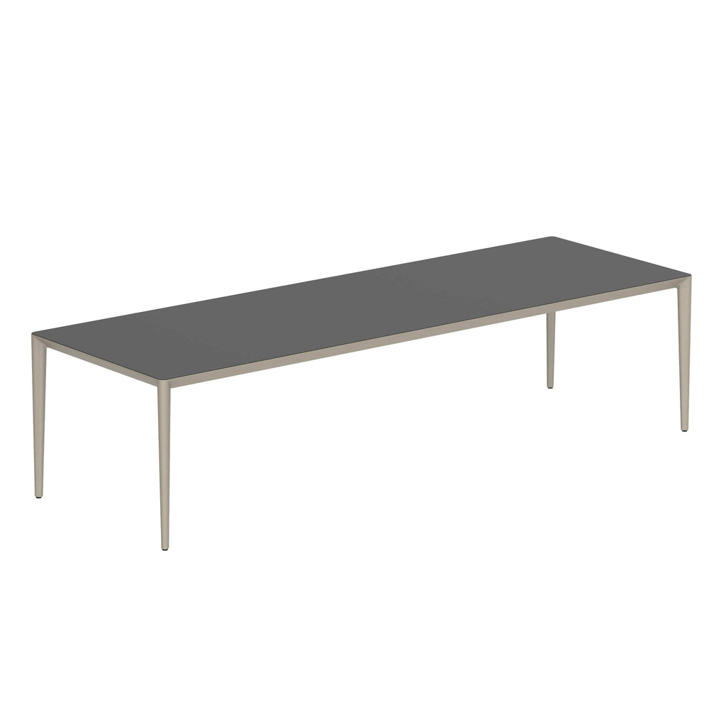 Royal Botania U-nite tafel in diverse kleuren gepoedercoat aluminium met keramisch of teak blad.