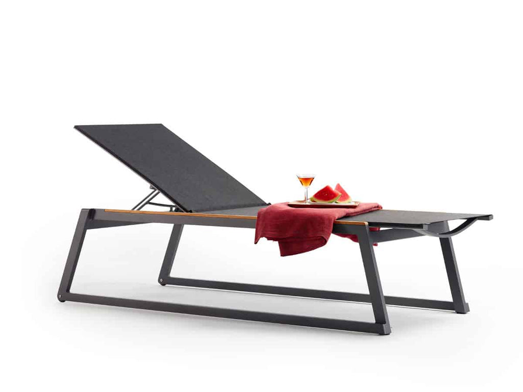 Foxx ligbed is uitgevoerd met een aluminium onderstel in de kleur antraciet en met softex coal zitting en rug. Optioneel is deze stoel verkrijgbaar met een teakhouten arminlegger.