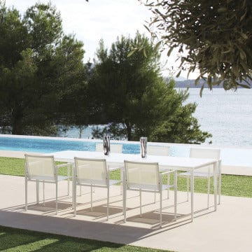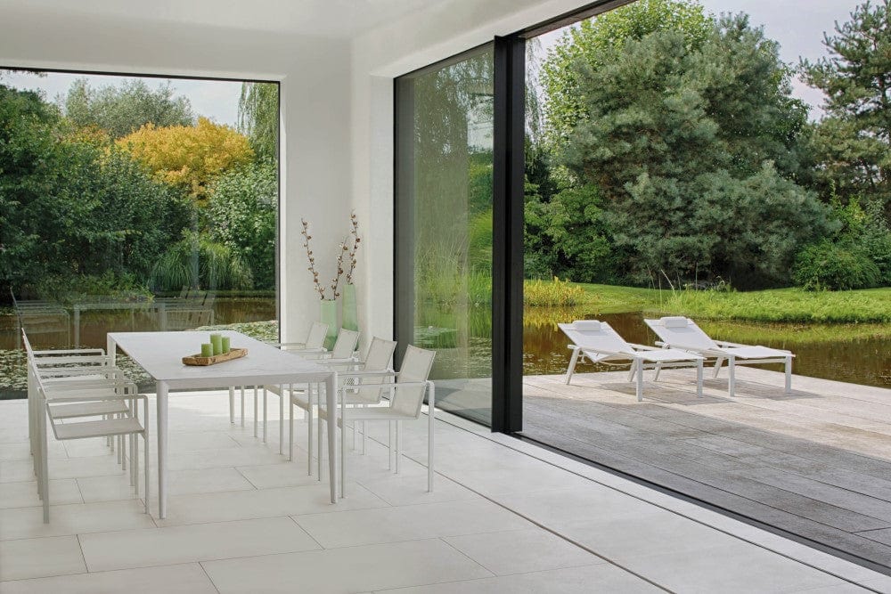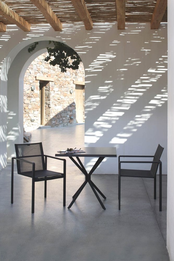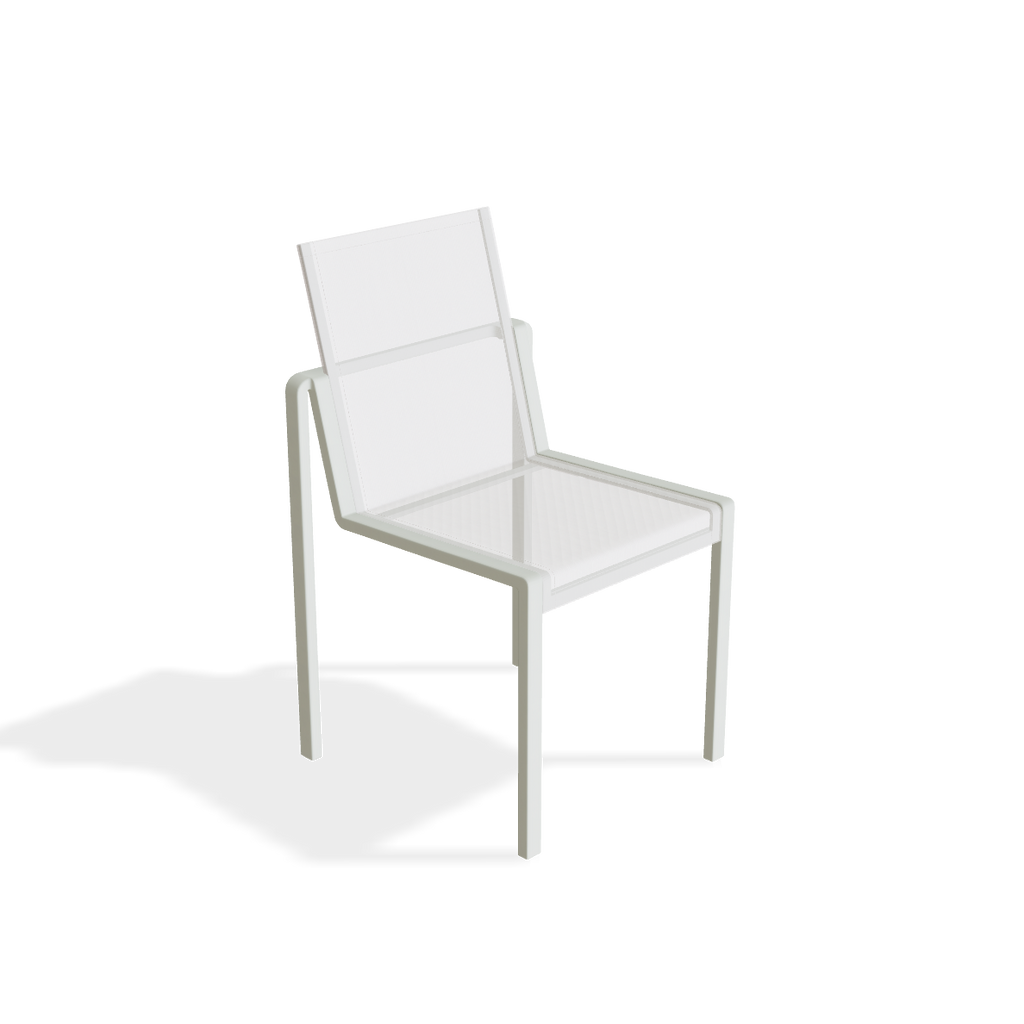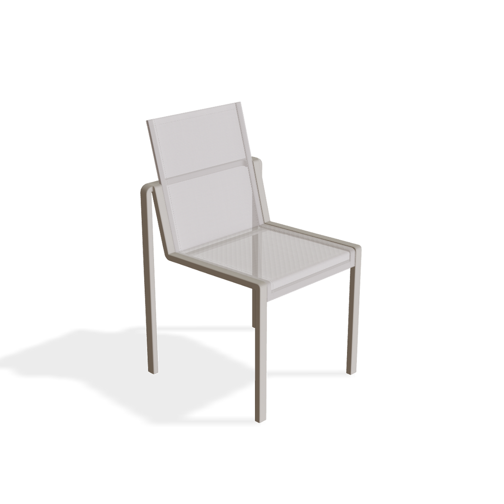 Royal Botania stoel van de Alura collectie, ontworpen door Kris van Puyvelde. Het frame is van gepoedercoat aluminium en verkrijgbaar in de kleur Antraciet, Pebble, Brons en Wit. De zitting en rugleuning zijn gemaakt van het stevige en weerbestendige materiaal Batyline®.