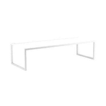 Royal Botania tafel van de Ninix collectie, ontworpen door Kris van Puyvelde. Het frame is van geborsteld RVS, Electro polished RVS of gepoedercoat RVS in de kleur wit, sand, antraciet en brons. Het blad is leverbaar in ceramic of teak.