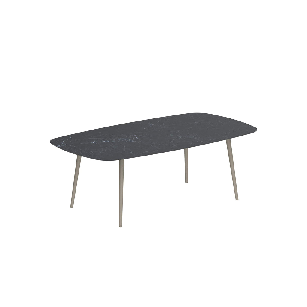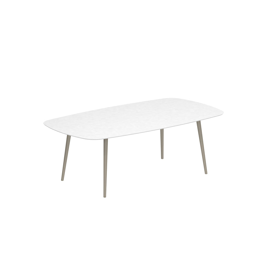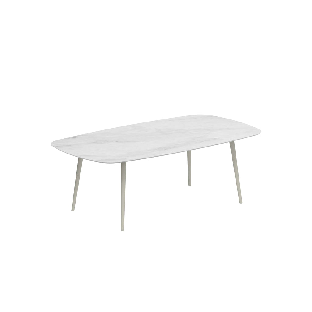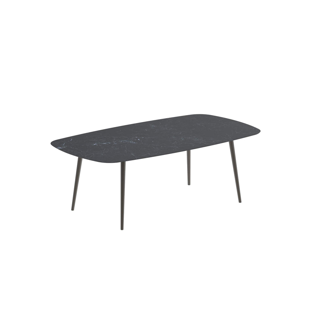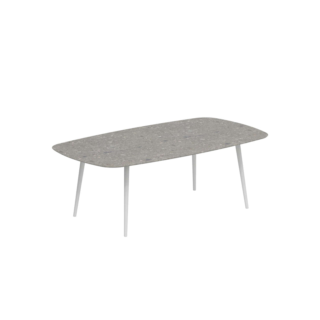 Royal Botania Styletto tafel in diverse kleuren gepoedercoat aluminium met keramisch of teak blad. Verkrijgbaar in 6 hoogtes.