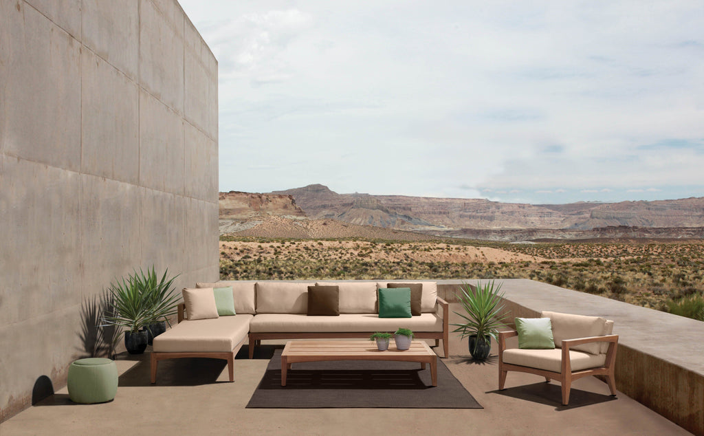 Deze comfortabele lounge bank tweezitter met armleuningen van de Royal Botania Zenhit Lounge collectie heeft een frame van teak hout.