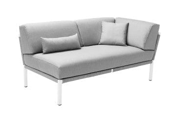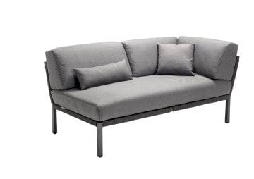 Club linker lounge module is verkrijgbaar met wit aluminium onderstel en string flex koord in de kleur wit/ grijs of met een antraciet aluminium onderstel en string flex koord in de kleur antraciet. Inclusief zesdelig kussen set.