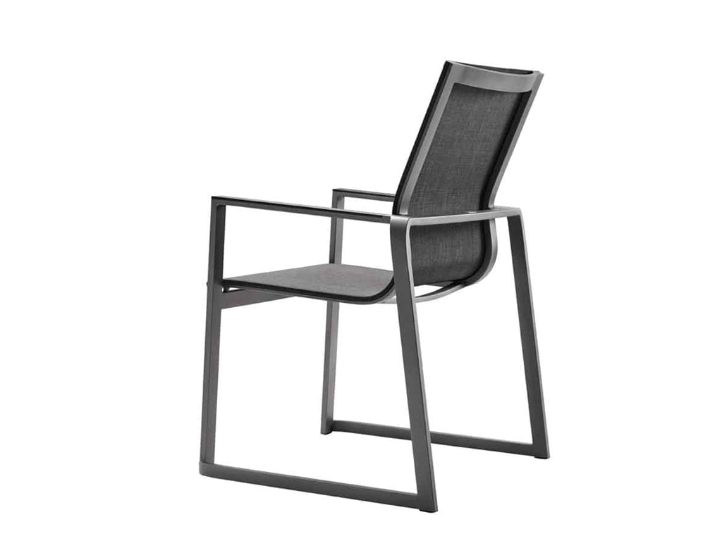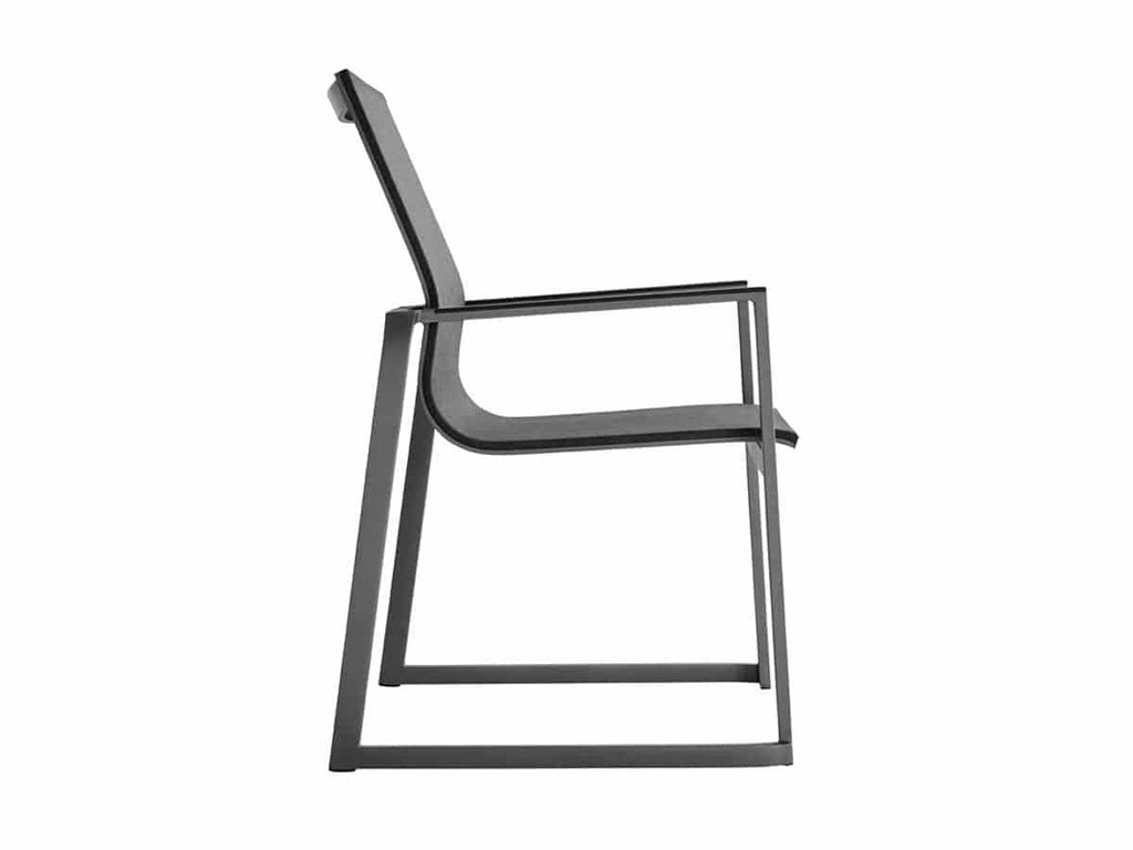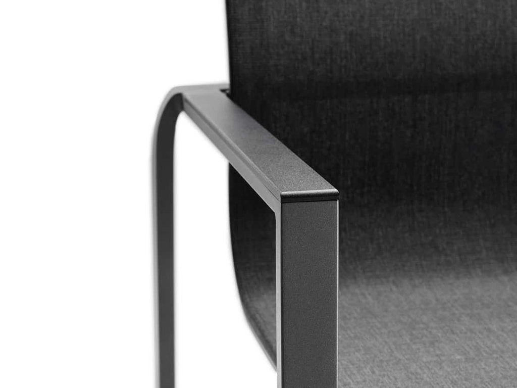 Foxx stoel is uitgevoerd met een aluminium onderstel in de kleur antraciet en met softex coal zitting en rug. Optioneel is deze stoel verkrijgbaar met een teakhouten arminlegger.