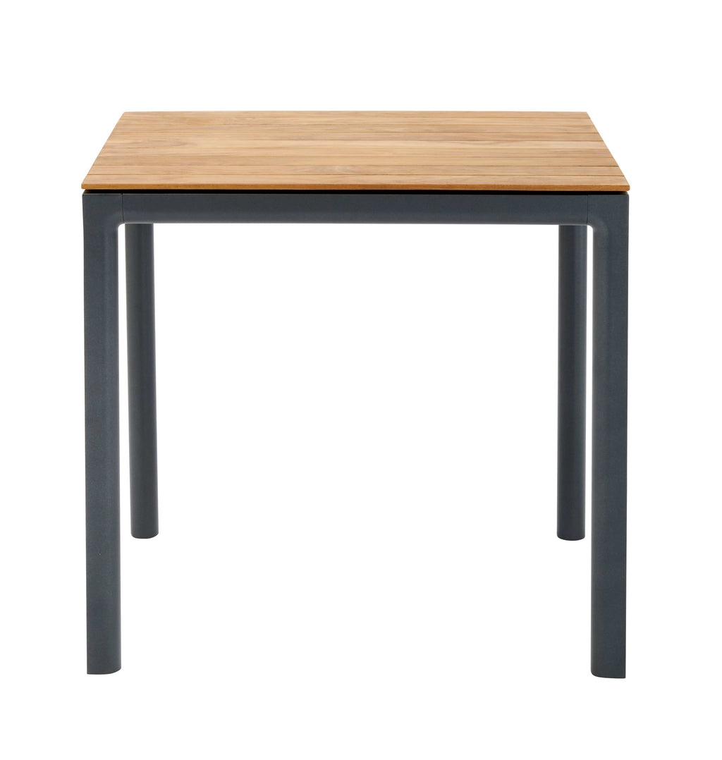 De Soft tafel is voorzien van een aluminium onderstel in de kleur antraciet of wit en verkrijgbaar met een HPL-, Ceramic-, Dekton-, of een teakhouten blad.