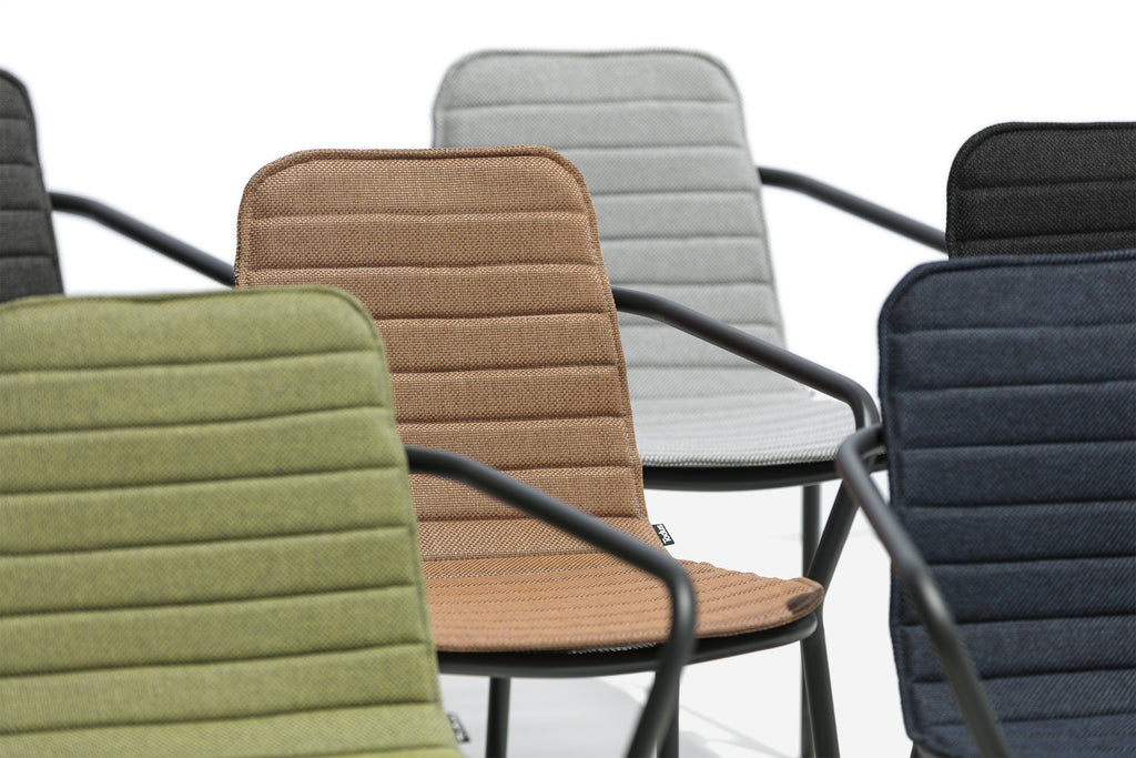 Deze comfortabele eetstoel van de Todus Starling collectie heeft een frame van gepoedercoat RVS en is verkrijgbaar in meerdere kleuren frame's en met meerdere kleuren zitkussens.