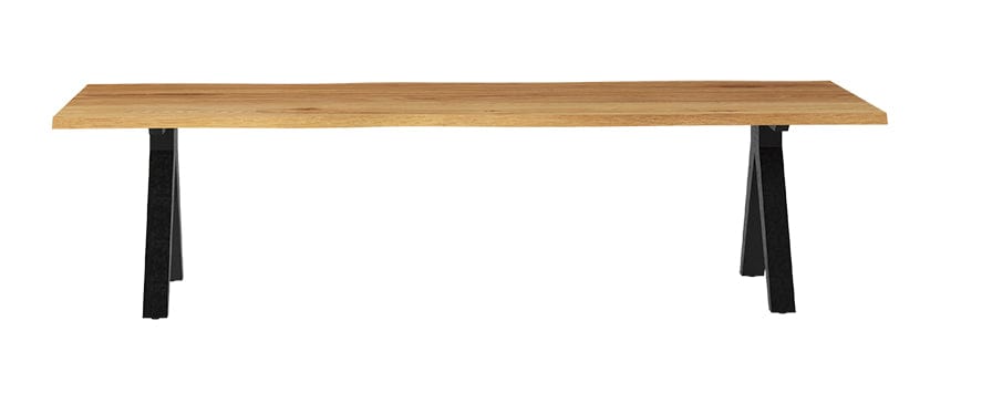 Het robuuste blad is 40mm dik en de randen van de tafel hebben een natuurlijke afwerking. Het frame gepoedercaot aluminium in de de kleur antraciet.