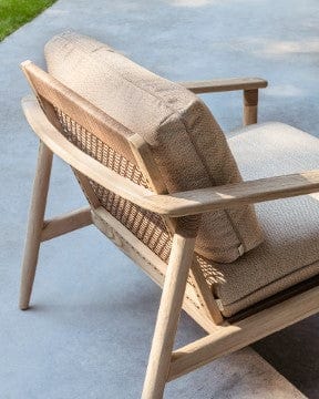 De prachtige David collectie van Vincent Sheppard is gemaakt van gebeitst teakhout en past thuis in iedere tuin en door het uitstekende zitcomfort is hij geschikt voor elke gelegenheid. De stoel is voorzien van een geweven rug en heeft touwdetails. De stofferingen van de kussens zijn te kiezen in een kleur naar kleuze, hierdoor kunt u uw meubel samenstellen zoals uw wilt.
