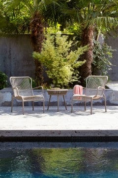 De Loop collectie van Vincent Sheppard bestaat uit licht gewicht tuinmeubelen bestaande uit een eetstoel, loungestoel, voetenbank, bijzettafel, loungebank, koffietafel en ligbed.