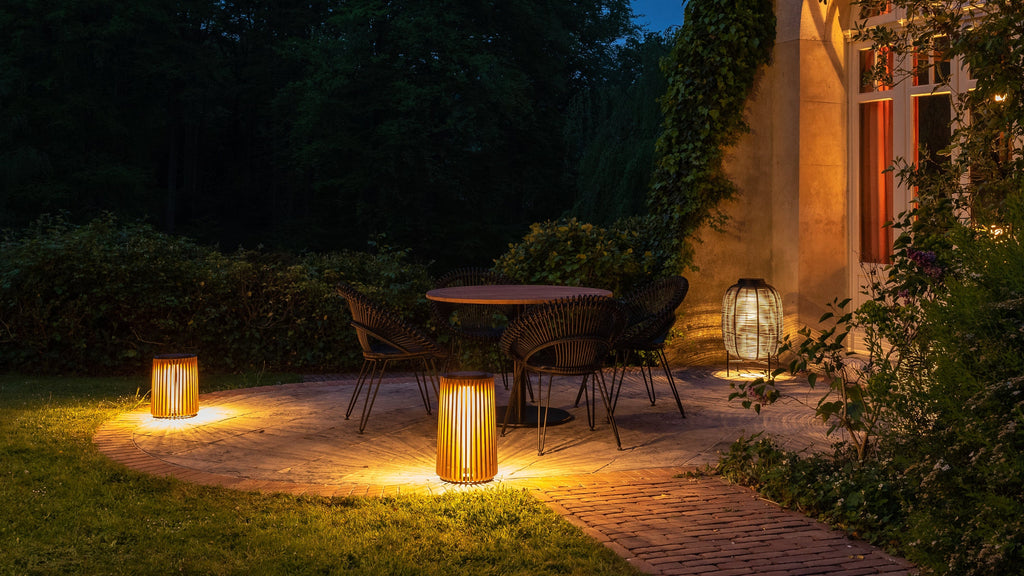 De Maya lampen van Vincent Sheppard zijn voorzien van een solar LED - module maar zijn ook oplaadbaar via een stekker. Het armatuur is gemaakt van een zwart frame met teakhouten raster